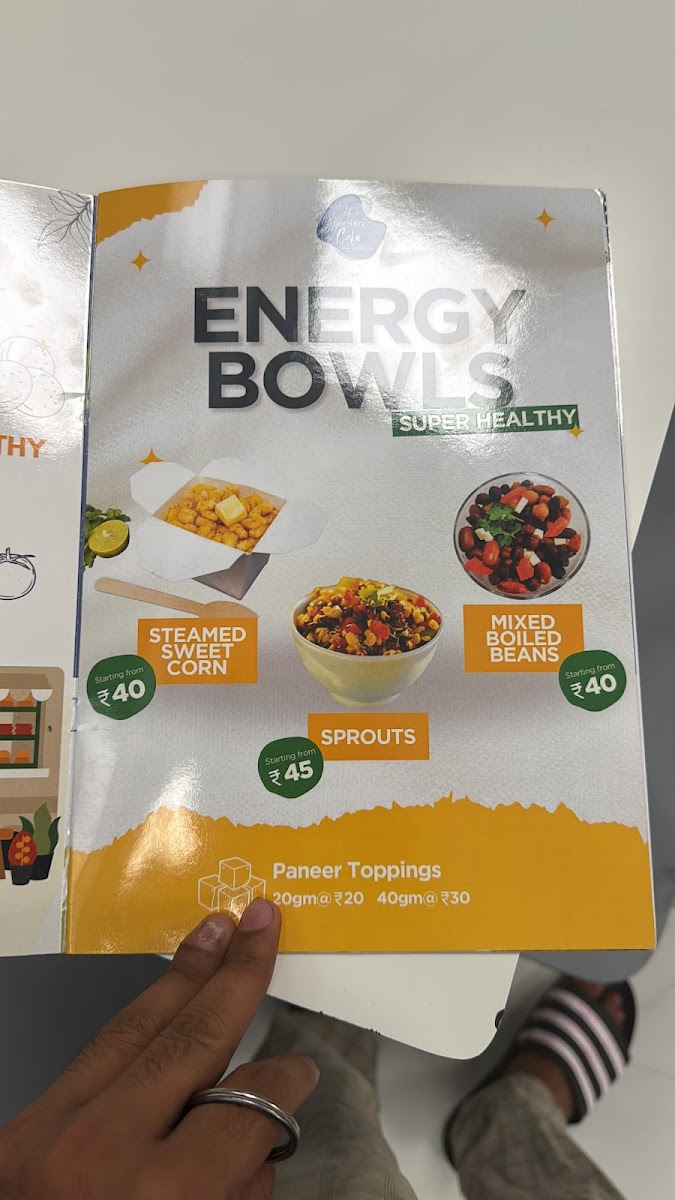 The menu is thoughtfully curated, focusing on wholesome, nutritious dishes. A highlight is the Mini Idli Bowl priced at ₹280, featuring soft mini idlis served with a comforting and mildly spiced matar paneer gravy. This dish offers the right balance of protein and flavor, delightfully enhanced by its careful preparation devoid of soda, refined oils, or artificial colors. For something a bit more adventurous, try the Matar Paneer Fusion Bowl at ₹500, which pairs the richness of matar paneer curry with soft idlis and cow gheeroasted bafla, served alongside steamed rice. It’s a protein-rich meal that is both satisfying and nourishing.
